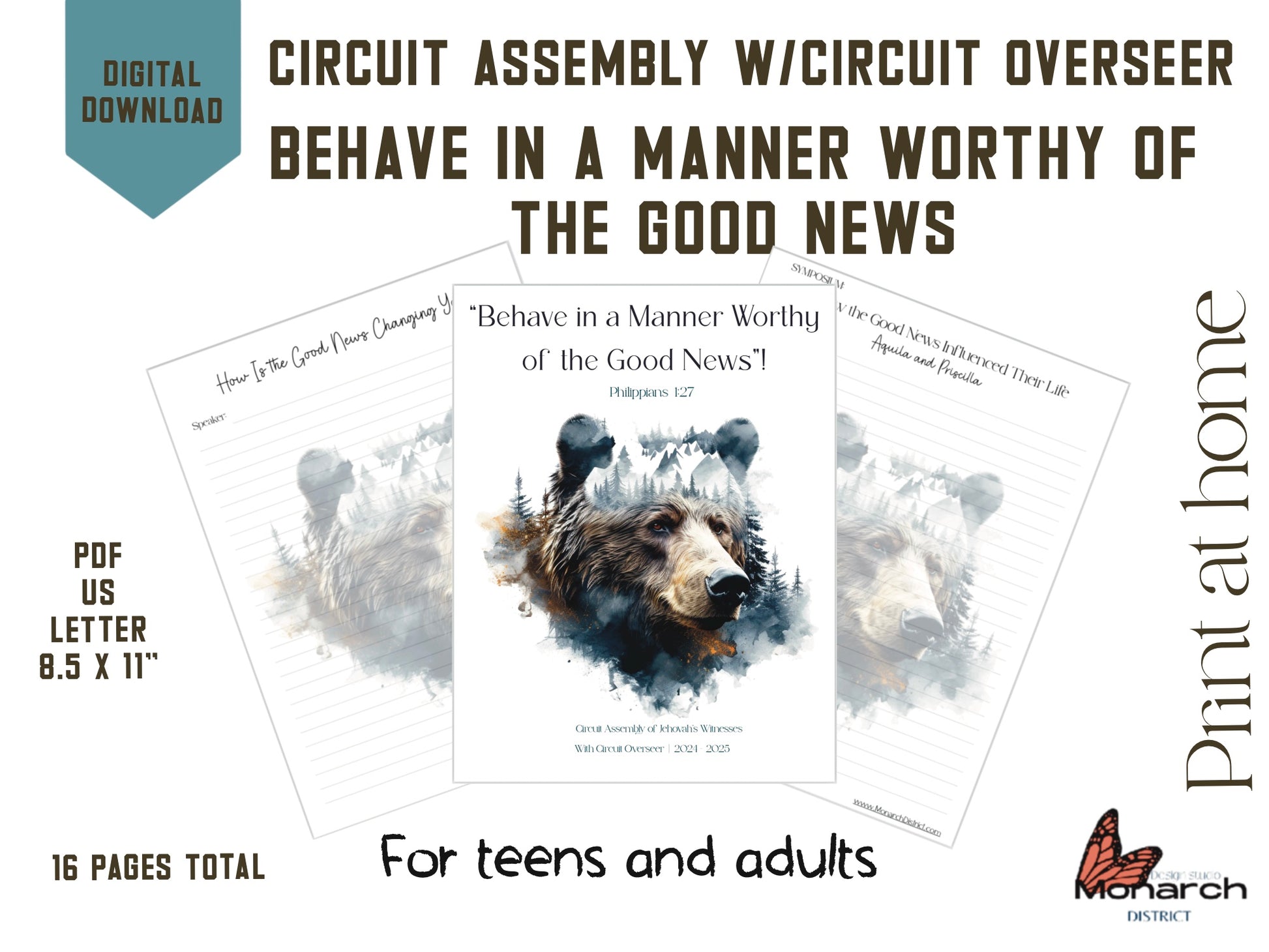ENGLISH, circuit assembly, BEHAVE IN A MANNER WORTHY OF THE GOOD NEWS” with circuit overseer. 2024-2025 Digital Activity book for Teens and adults. 1 page per talk plus extras. Available in Spanish .