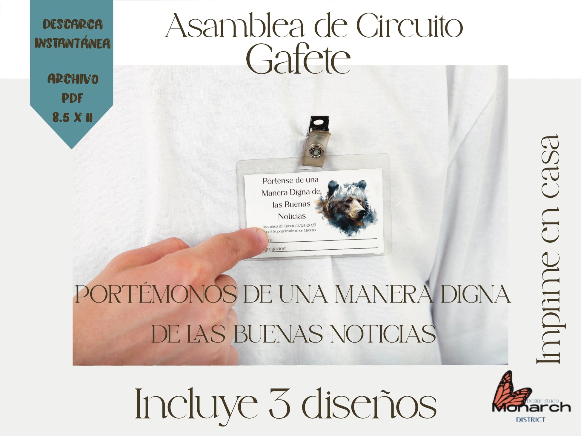 ESPAÑOL, Gafete para la asamblea de circuito PÓRTENSE DE UNA MANERA DIGNA DE LAS BUENAS NOTICIAS, descarga digital, incluye 3 diseños. También disponible en Inglés.